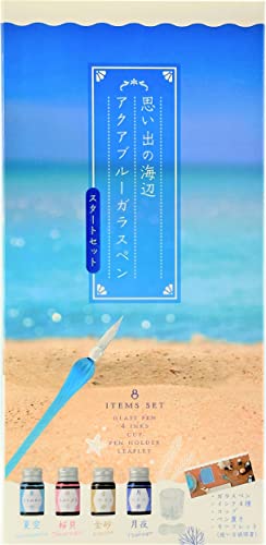 海と空のどこか懐かしいノスタルジックな透明感、「思い出の海辺」アクアブルーのガラスペン。 日記や手紙をガラスペンで書いてみませんか。