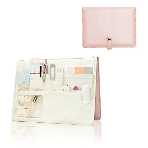 小さめノートやメモ帳が入るポケットの他に、ペンやマーカー、マスキングテープやテープのり、ふせんやシールなどが入る多彩なサイズのポケットで整理整頓できます。中身の見える透明ポケットは、お気に入りの小物をディスプレイしてもOK。チャームなどがつけられるストラップホール付きです。