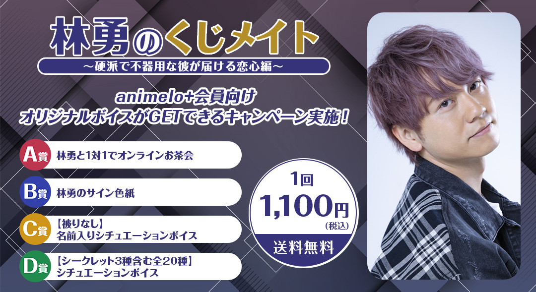 林勇のくじメイト~硬派で不器用な彼が届ける恋心編~ グッズ アニメイトオンライン 【くじメイト】林勇のくじメイト~硬派で不器用な彼が届ける恋心編~ 販売期間 2023年9月7日(木)12:00~2023年11月1日(水)23:59