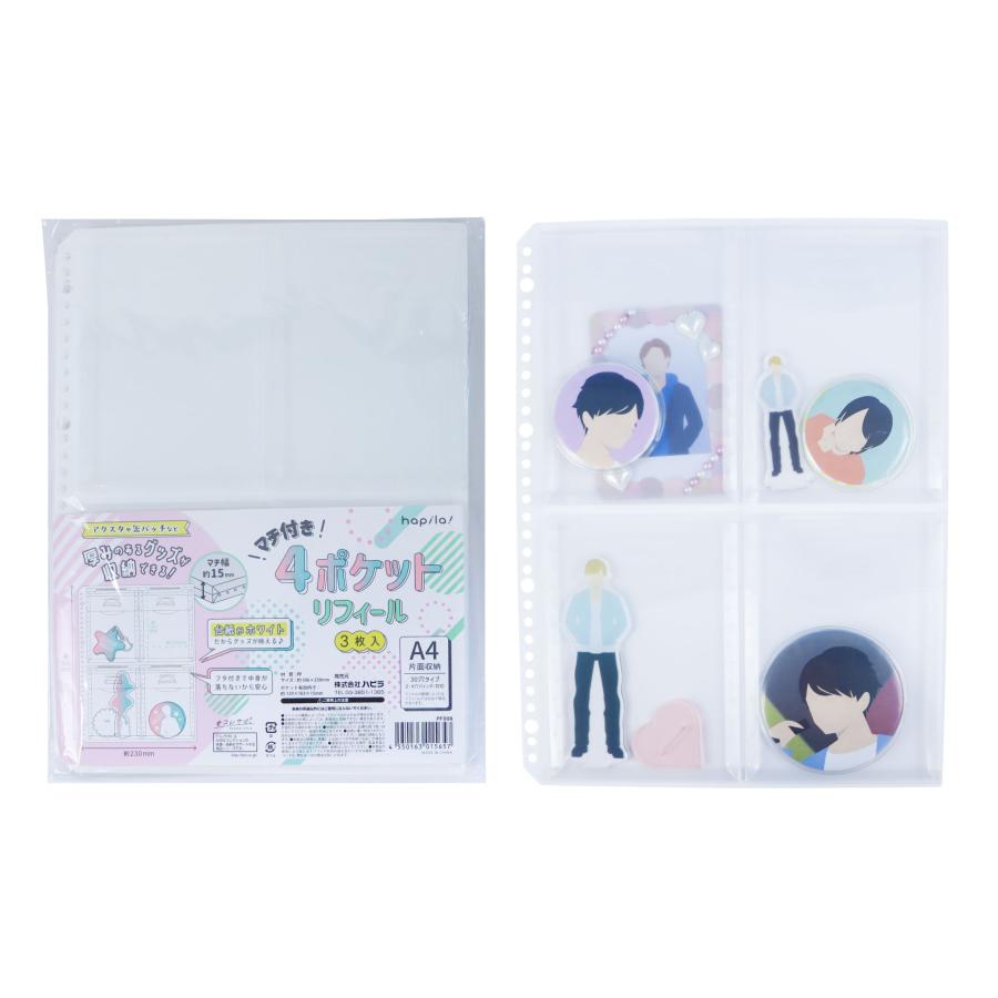 アクリルスタンドや缶バッジ等厚みのあるアイテムを収納できるマチ付きポケット付きリフィール