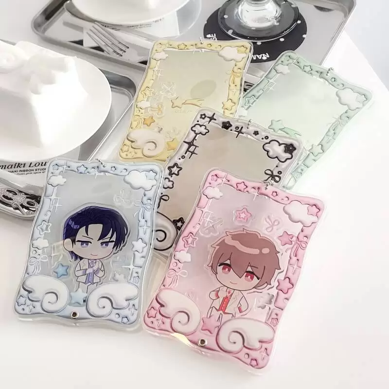 天使の羽モチーフの「エンジェルコア」と、ネームボードで人気の「ぷっくり」をMixしたアクリルフレーム。韓国系、水色界隈、天使界隈など様々なジャンルのオタクにぴったりなキュートなデザインです。